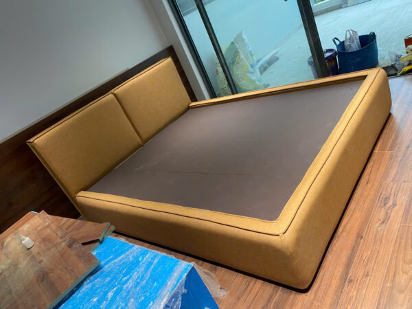 Một số giường dùng lâu bị lệch form, góc bọc nhăn hoặc bề mặt không phẳng. Khi bọc lại, thợ sẽ xử lý để giường “đứng form”, nhìn gọn và cao cấp hơn.